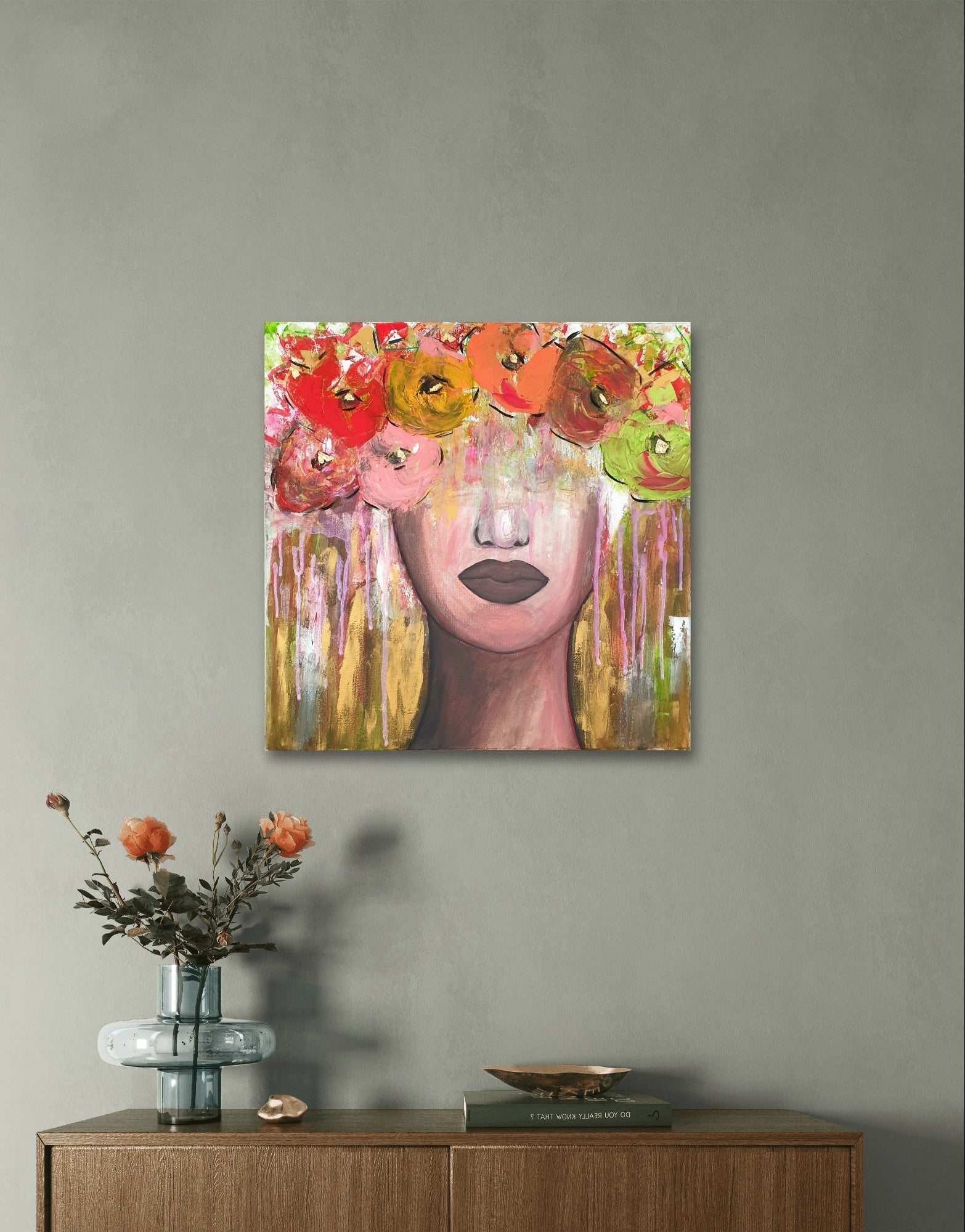 FLOWER HEAD est une œuvre originale réalisée la peinture acrylique et touches de feuille d'or sur toile.