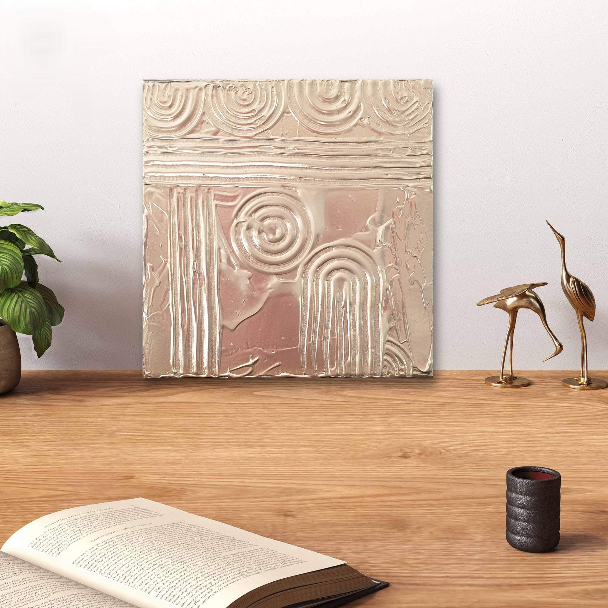 Réalisez un intérieur chic et contemporain avec la peinture Golden Signs. Peinte avec une peinture en relief dorée, cette peinture sur toile apporte une touche ethnique raffinée en or à votre décoration intérieure.